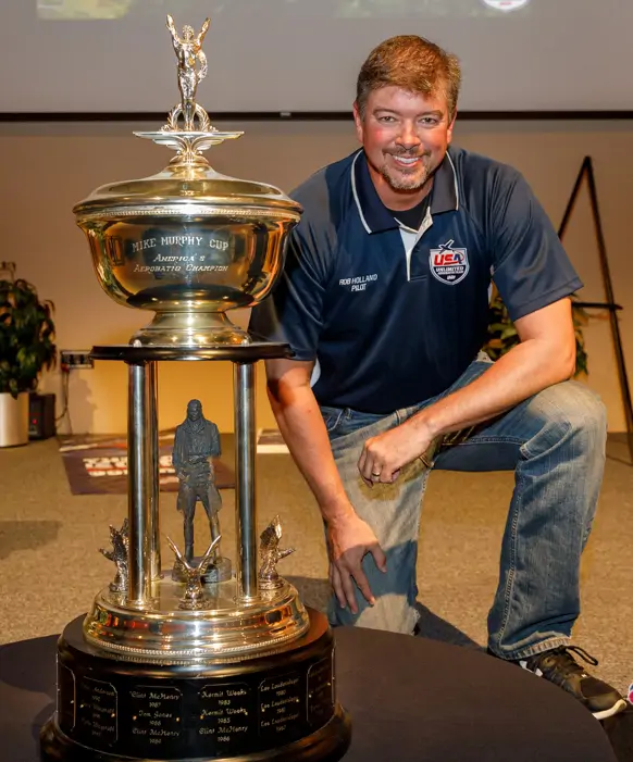 In 2002, Rob became an active participant in air shows around the country, and in 2007, he acquired his signature one-of-a-kind MXS-RH aerobatic airplane. Over the course of the last two decades, Rob was named an honorary Canadian Snowbird and Blue Angel, received the Art Scholl Memorial Showmanship Award, and was awarded more than 38 national and international medals. He also earned 13 consecutive U.S. national aerobatic championships (Unlimited), 14 U.S. national aerobatic Freestyle championships, and six world Freestyle championships. In addition, Holland was the driving force in securing the 2026 World Aerobatic Championships for Batavia, New York.